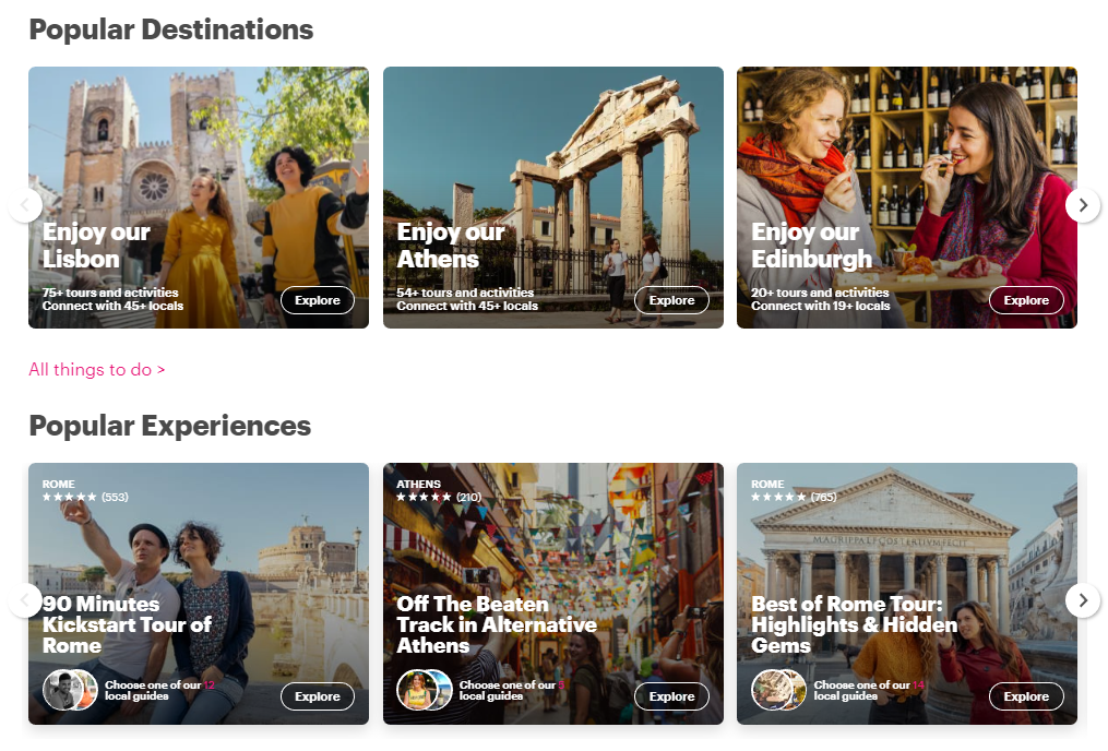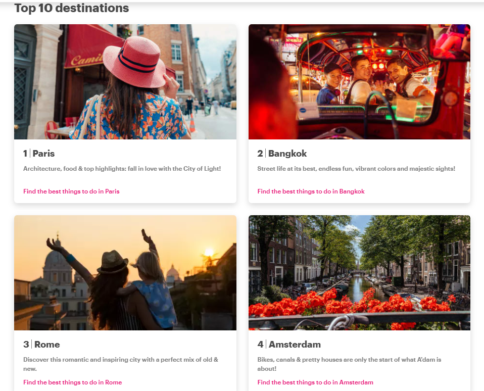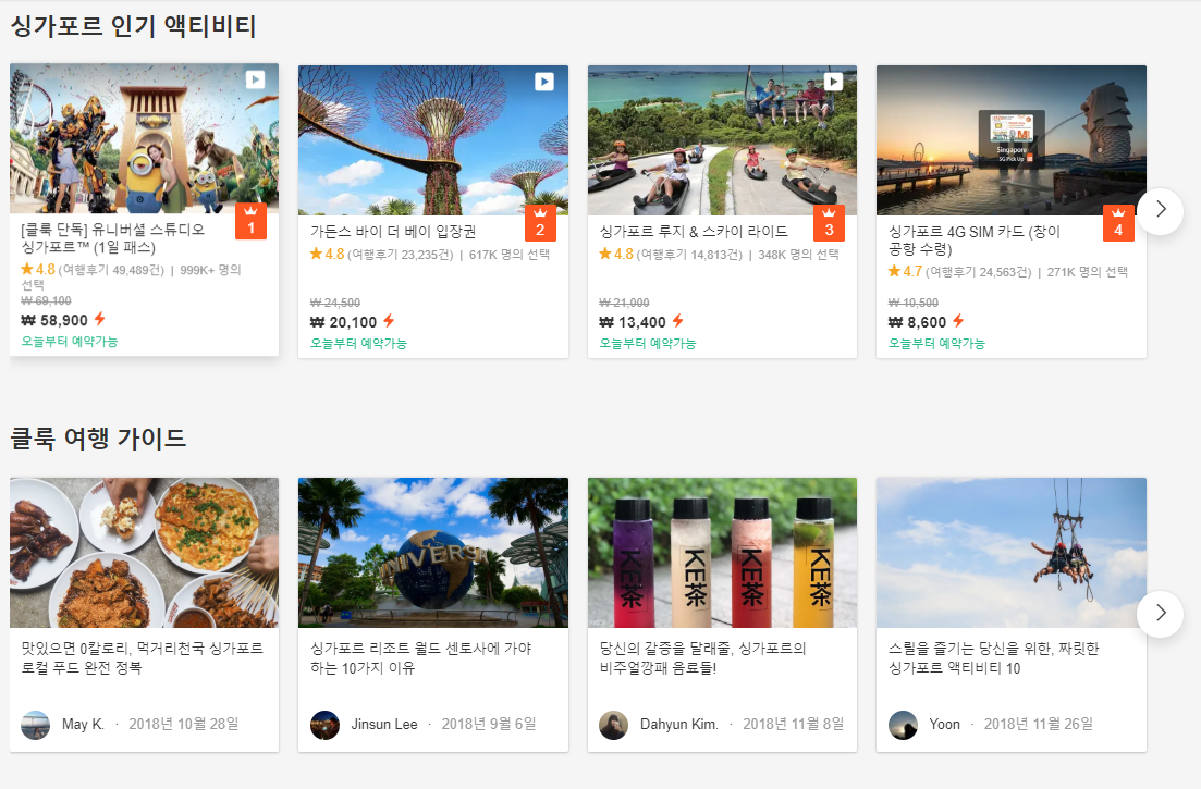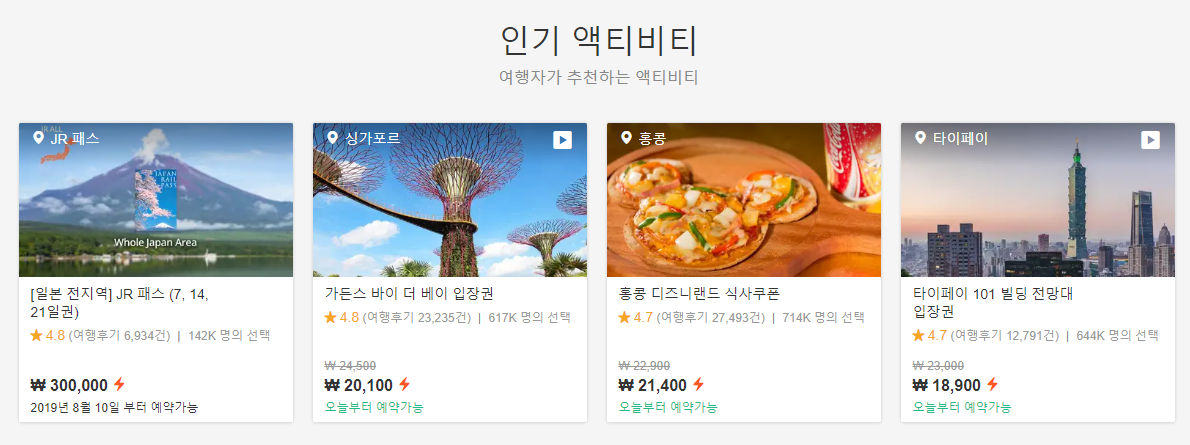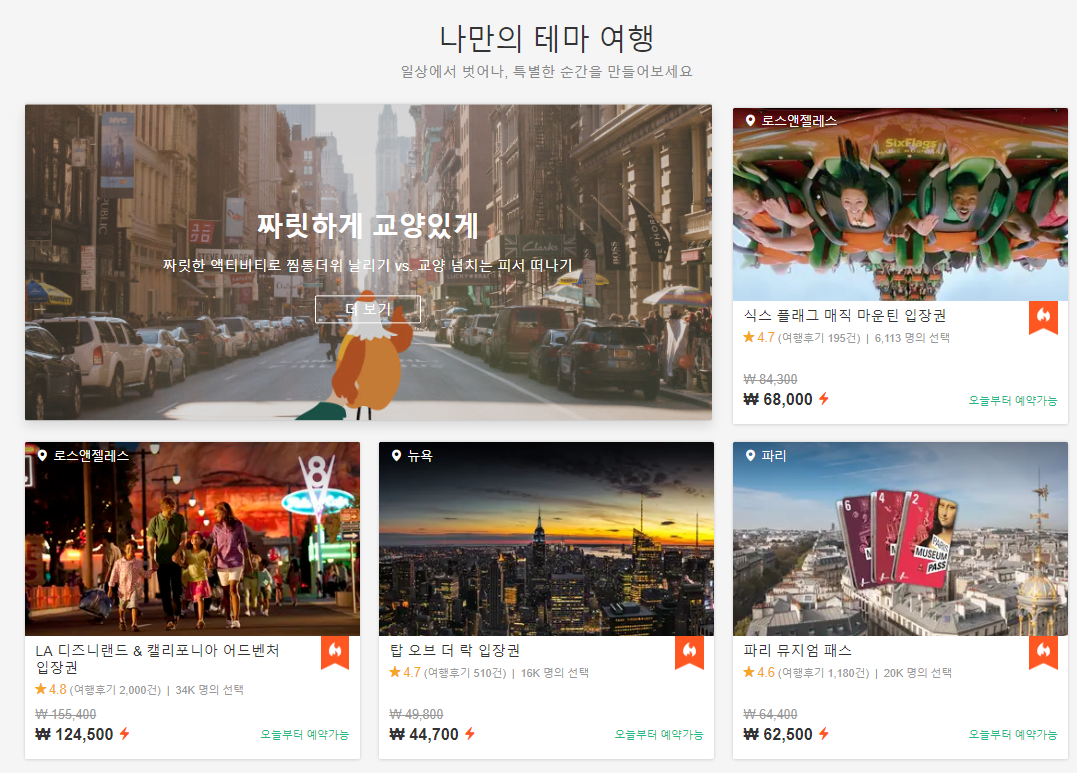 klook과 마찬가지로 여행관련 입장권, 액티비티, 투어 등의 정보 및 예약사이트로