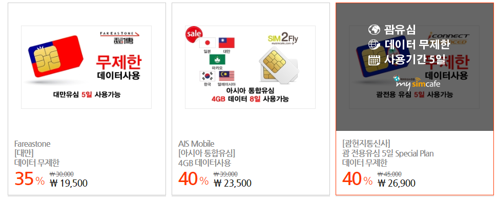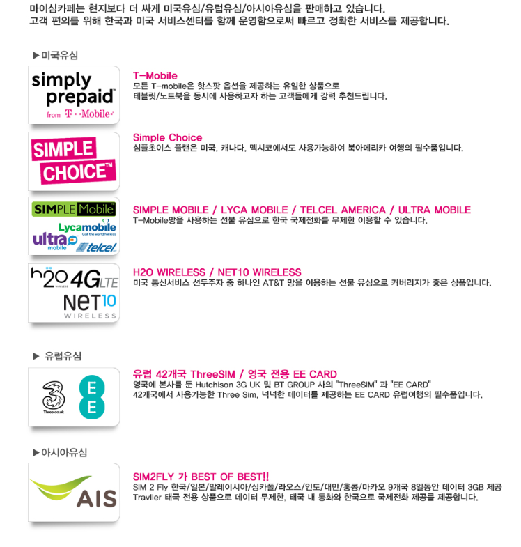 해외 각 나라 현지 유심칩 가격 및 정보 사진으로 확인하세요 ~