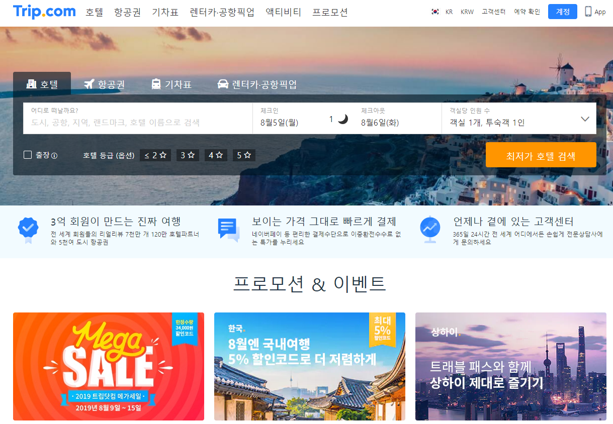 트립닷컴은 전 세계 호텔/항공권/기차표/렌터카/액티비티까지