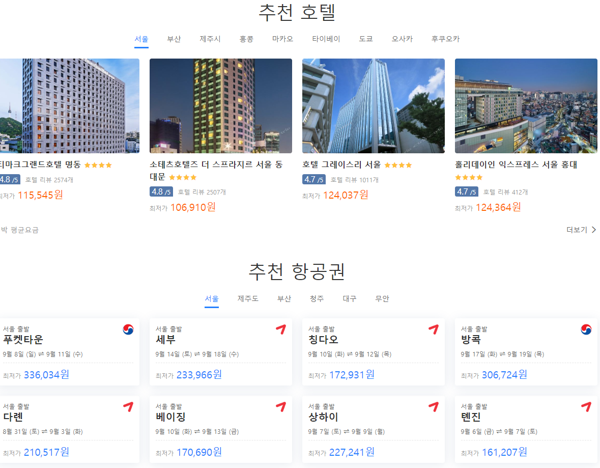 로그인하지 않고 보는것과 차이가 있을 수 있으므로 로그인 후 특가호텔도 챙기시면 좋습니다.