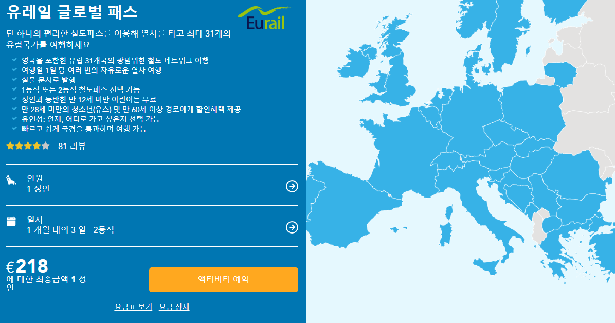그리고 이 레일유럽사이트는 다양한 국가간티켓 예를 들면