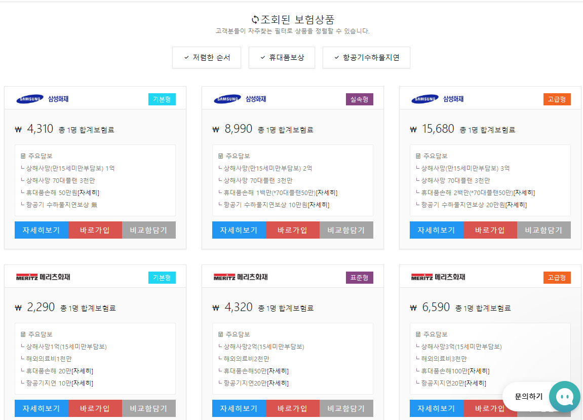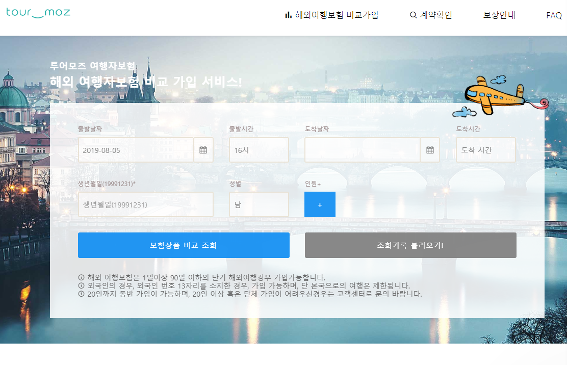 여행자보험 가입 시 시간 선택은 집에서 출발하는 시간부터 여행이 끝난 후