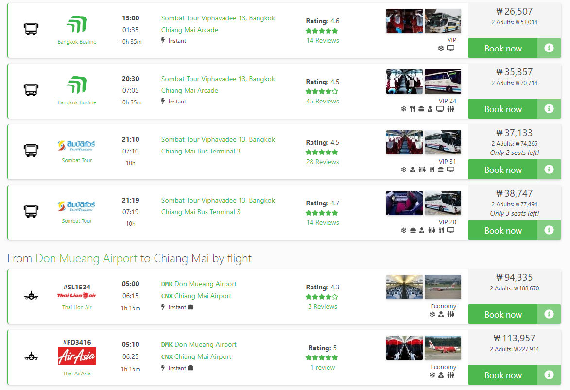 방콕에서 치앙마이가는 국내선 비행기 노선, 가격, 예약 / 방콕에서 호치민가는 교통수단 확인 및 노선확인,