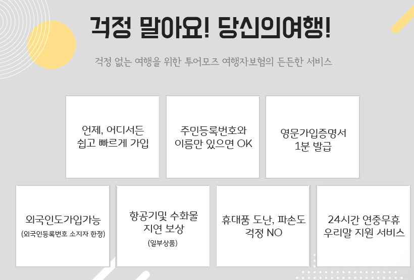 집과 공항간 이동중에 발생하는 사고로부터도 보장받으실 수 있습니다.