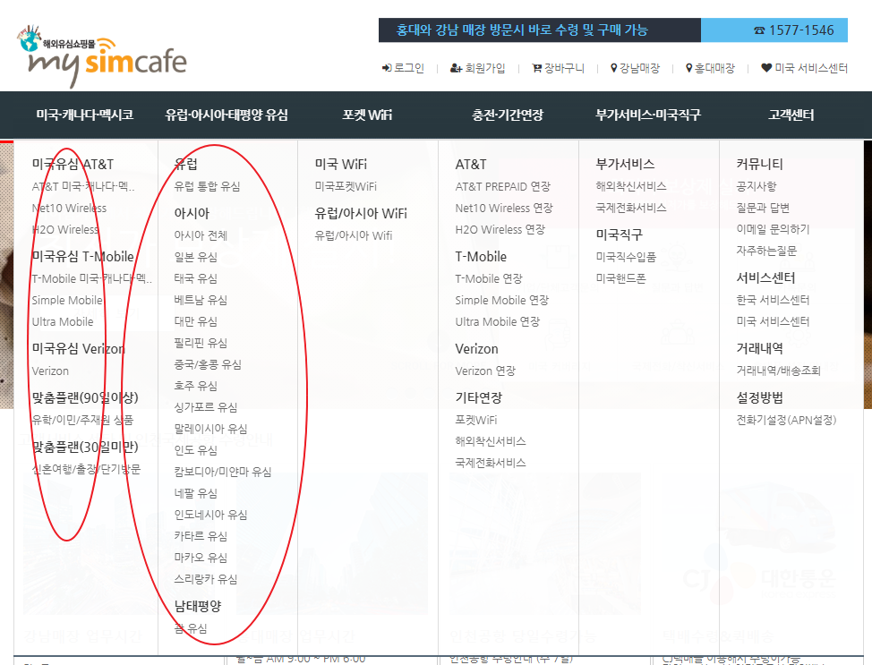 이 사이트의 특징은 전세계 국가의 현지 유심침, 전세계 공항의 픽업 및 샌딩서비스를 쉽게 구매하고