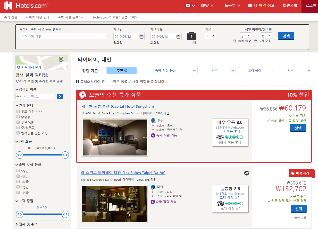 제가 주로 사용하는 호텔예약사이트도 호텔스 닷컴인데
