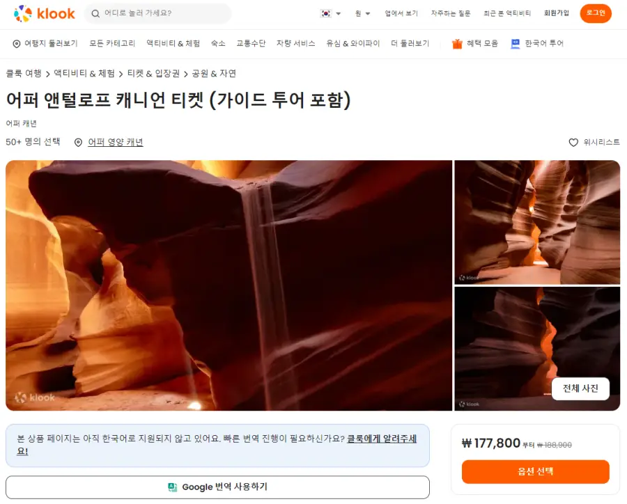 어퍼 앤털로프 캐니언 티켓 (가이드 투어 포함)은 클룩사이트에서 쉽게 예약하실 수 있으며, 현재 할인된 금액에 이용하실 수 있습니다.