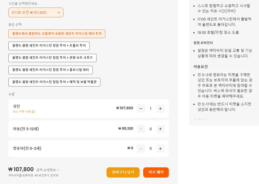 올랜도 출발 생어거스틴 일일 투어 및 왕복 이동 서비스는 클룩사이트에서 쉽게 예약하실 수 있으며, 현재 할인된 금액에 이용하실 수 있습니다.