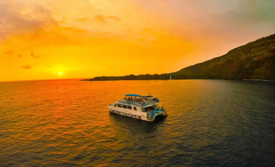 하와이의 뛰어난 자연경관을 즐기며 석양을 바라보고 식사를 즐길 수 있는 캡틴 쿡 디너 크루즈는 빅 아일랜드 방문객들에게 꼭 추천하고 싶은 경험 중 하나입니다. 캡틴 쿡 디너 크루즈는 케알라케쿠아 베이를 배경으로 하며 선상에서의 풍성한 식사와 함께 아름다운 석양과 밤하늘을 즐길 수 있는 기회를 제공합니다.
