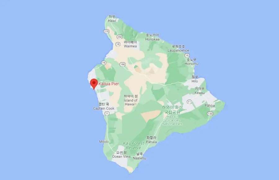 카일루아 부두는 킹 카메하메하 코트야드 메리어트 코나 비치 호텔의 해안가에 있는 카일루아 코나 시내 중심부에 위치해 있습니다. 거기에 도착하는 가장 좋은 방법은 개인 차량을 운전하는 것입니다.