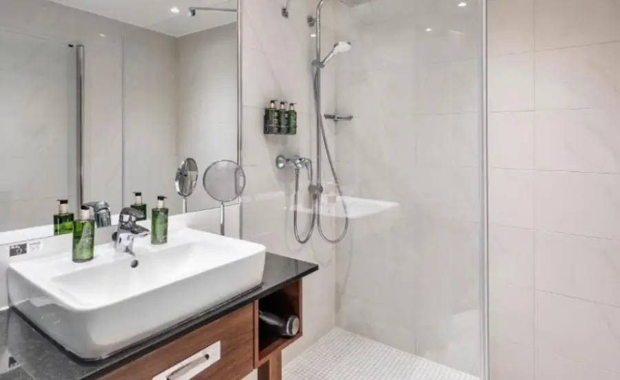 호텔은 지속 가능하며 위치가 좋지만 수하물을 가지고 접근하기가 약간 어려웠습니다. 트램과 버스 정류장이 매우 가까워서 이동이 훨씬 편리합니다. 또한, 객실은 매우 넓고 편안하며 모든 편의 시설을 갖추고 있습니다. 직원들은 매우 친절하고 세심했습니다. 아침 식사는 매우 다양하고 맛있어서 기대 이상이었습니다.