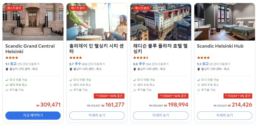 스칸딕 그랜드 센트럴 헬싱키(Scandic Grand Central Helsinki)의 최저 가격대는 아고다웹사이트에서 할인특가 가격으로 매일매일 변동되며 10만원대부터 다양하게 형성됩니다. 날짜별로 매일 가격이 다르므로 아고다웹사이트 최저가를 확인하시려면 아래 링크를 누르시고 원하는 날짜의 가격대를 선택해야 정확한 가격을 자세히 보실 수 있습니다.
