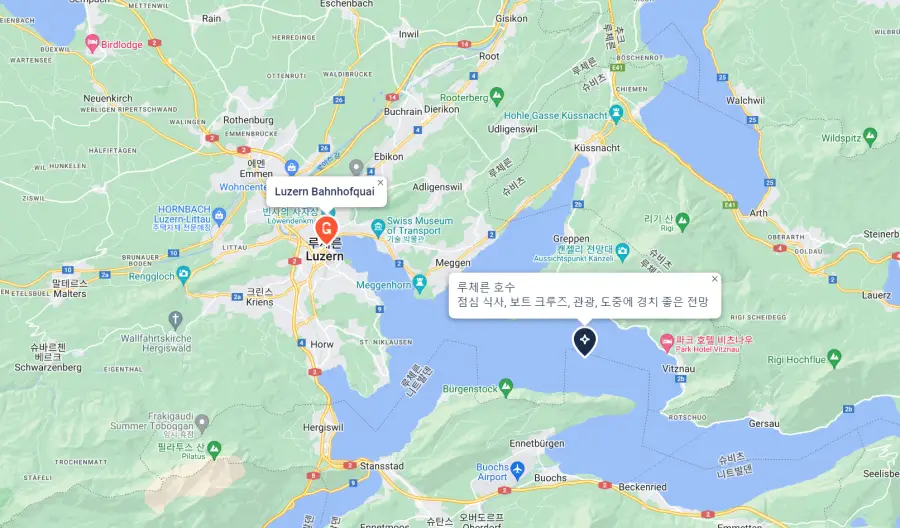- 오후 12:00 - 1:47 - 루체른에서 쿠스나흐트 암 리기까지 크루즈 (왕복)