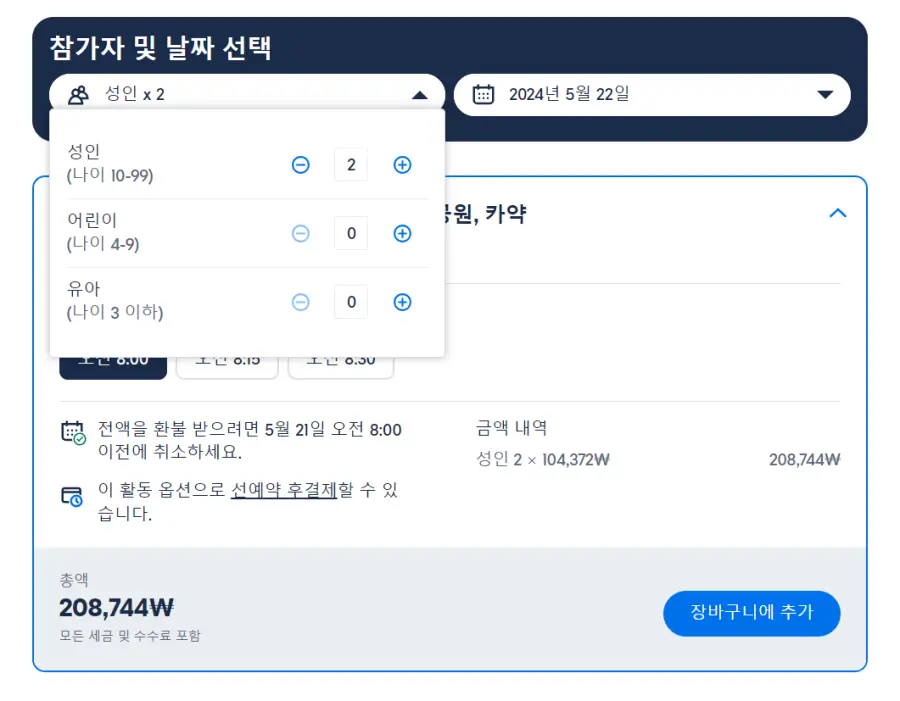 시작 시간을 보려면 예약 가능 여부를 확인하세요.