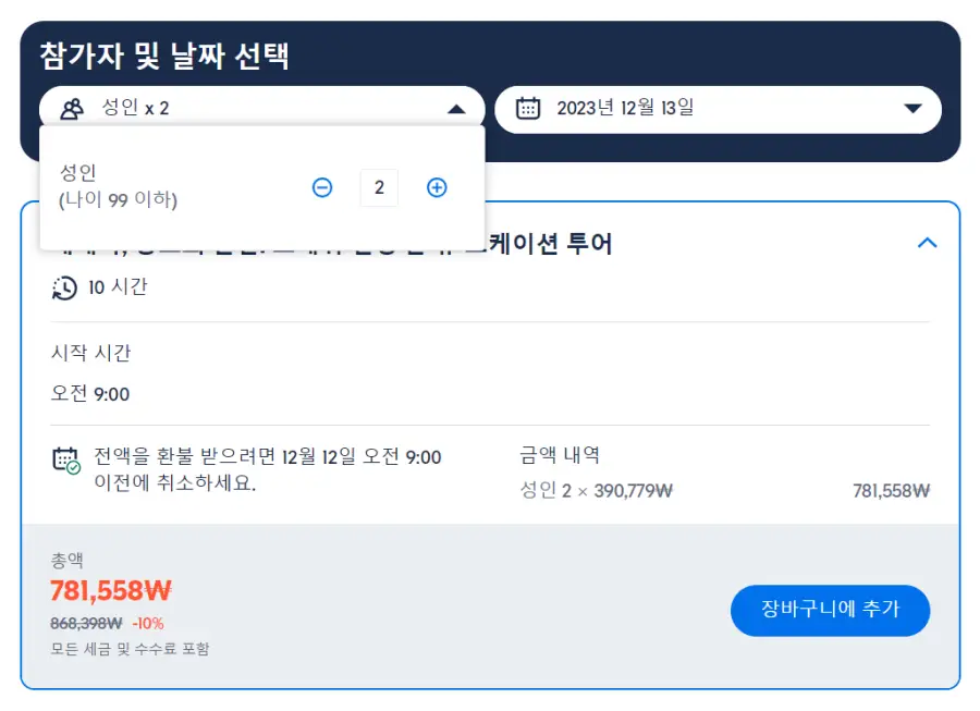 출발 보장을 받으려면 최소 2명의 여행자가 필요합니다.
