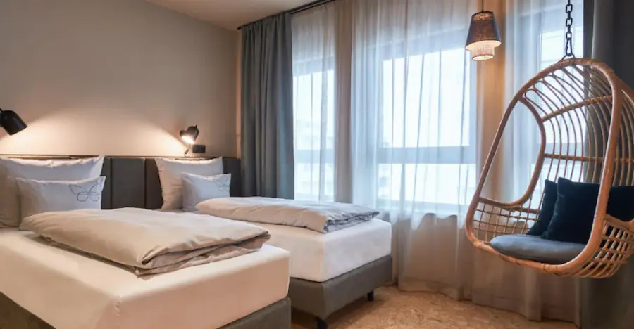 이 코쿤 잘츠부르크 (Cocoon Salzburg) 호텔은 잘츠부르크의 역사적인 분위기와 현대적인 디자인이 조화를 이루는 공간을 제공합니다. 코쿤 잘츠부르크 (Cocoon Salzburg) 객실 내부는 간결하면서도 세련된 인테리어가 돋보입니다. 벽화, 조명, 가구 등 모든 세부 사항이 섬세하게 고려되어 여행자들에게 편안한 휴식 공간을 제공합니다. 그린색과 나무의 색조가 어우러져 자연 친화적인 분위기를 연출하며, 각 방마다 창문을 통해 자연의 빛이 들어오게 되어 있습니다.