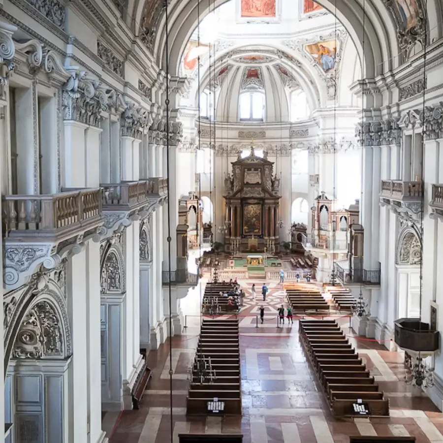 잘츠부르크 대성당은 17세기 바로크 건축의 대표적인 예로, 이 성당은 그 웅장한 외관과 내부 장식, 그리고 역사적인 가치로 유명합니다. 이 성당은 성가수 모차르트가 침례를 받은 곳으로도 잘 알려져 있습니다.
