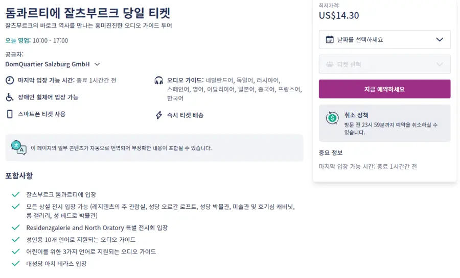 잘츠부르크 돔콰르티에(DomQuartier Salzburg) 입장권은 tigets 온라인 사이트에서 간편하게 예약하실 수 있으며 이메일, 페이스북, 구글 아이디로 쉽게 회원가입이 가능합니다.
