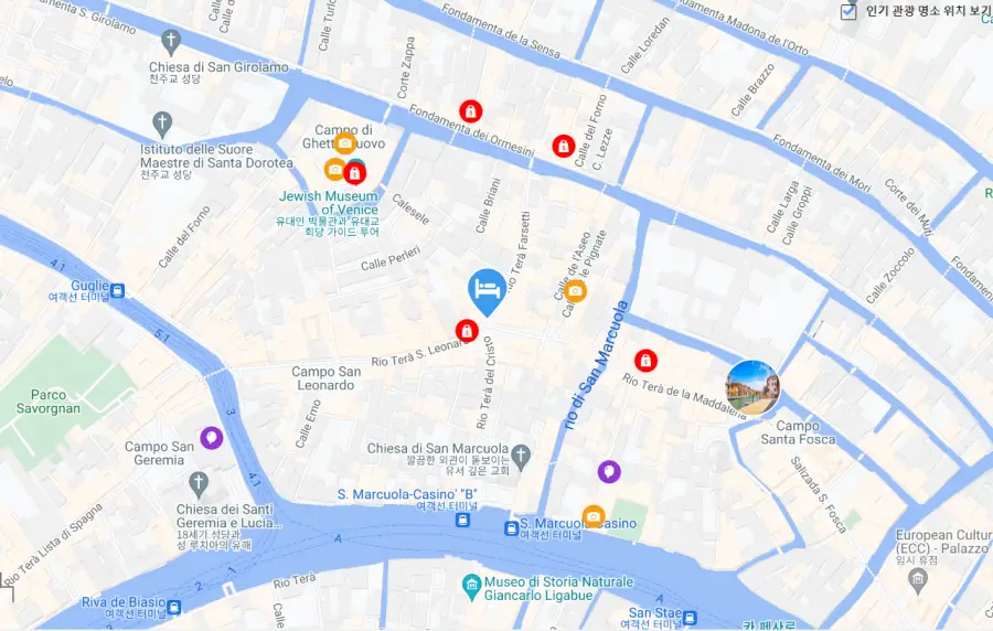이 지역은 또한 유대인 겟토가 위치해 있는 곳으로도 유명합니다. 이 겟토는 세계에서 가장 오래된 유대인 지역 중 하나로, 여전히 유대 문화의 중심지로 자리 잡고 있습니다.