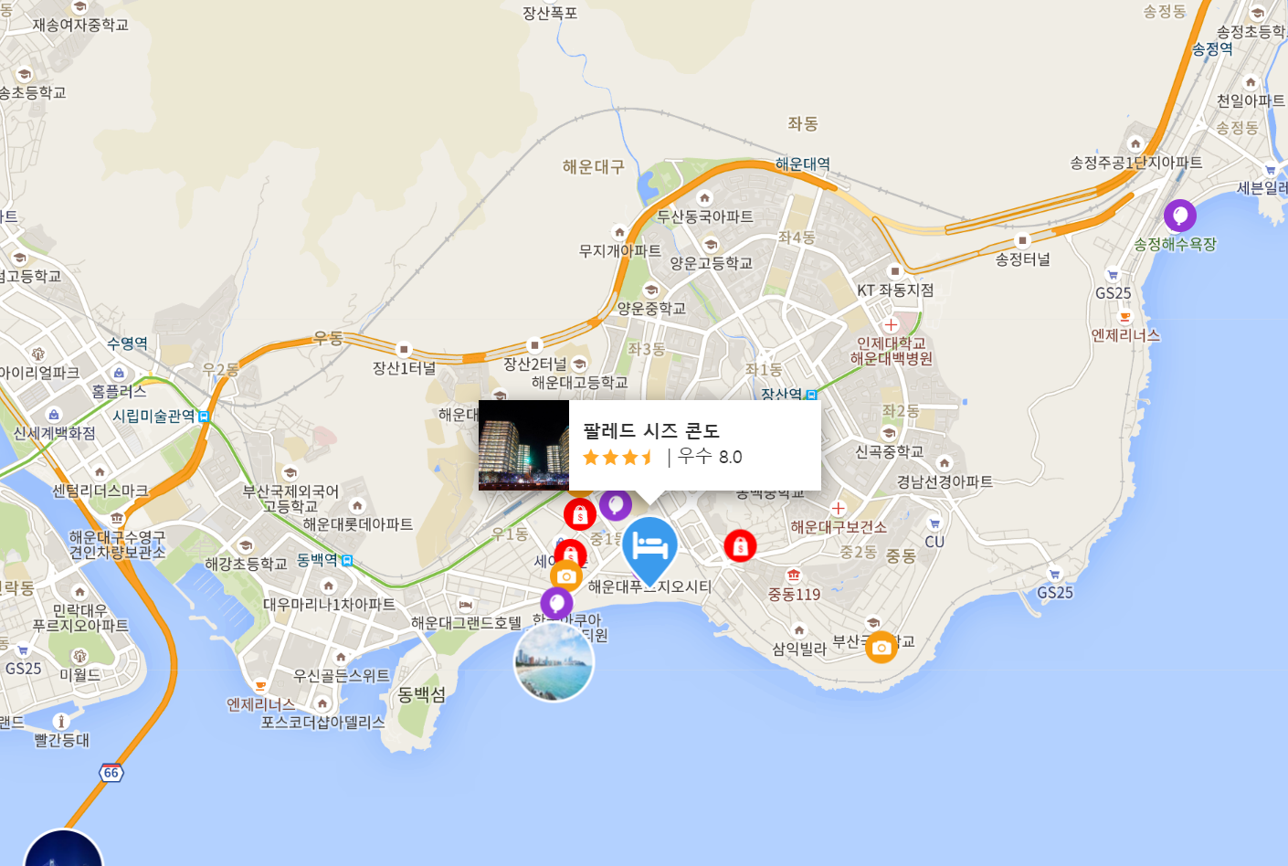해운대 팔레드 시즈 콘도 (Pale De CZ Condo)의 최저 가격대는 아고다에서 할인특가 가격으로 매일매일 변동되며 10만원대부터 다양하게 형성됩니다.아고다 최저가를 확인하시려면 아래 링크를 누르시면 원하는 날짜의 가격대를 자세히 보실 수 있습니다.