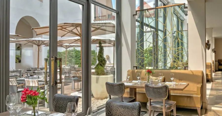 이 호텔의 레스토랑은 체코의 전통적인 맛과 국제요리를 선보입니다. 신선한 재료를 사용한 요리를 즐길 수 있으며, 다양한 와인과 칵테일도 제공합니다. 특히, 이 호텔의 바 'The Augustine Bar'는 프라하에서 가장 독특한 바 중 하나로, 체코의 전통적인 맥주와 함께 다양한 칵테일을 즐길 수 있습니다.
