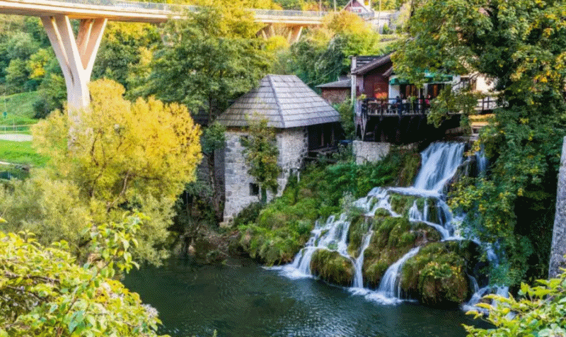 마을의 특징은 여러 개의 작은 폭포와 함께 흐르는 물줄기, 그리고 물레방아와 전통 가옥들이 어우러진 고즈넉한 분위기입니다. 이곳은 크로아티아에서 가장 오래된 자연 보호 구역 중 하나로, 풍부한 역사와 자연이 조화를 이루고 있어요.