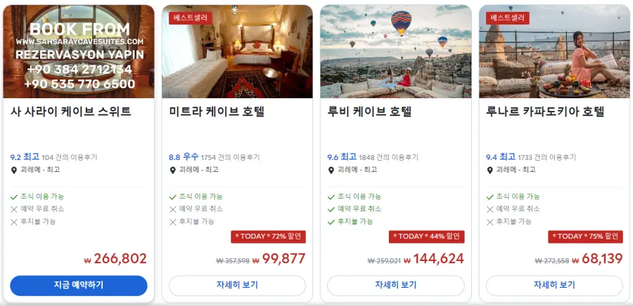카파도키아호텔추천 / 카파도키아여행에 고레메지역 위치좋고 동굴집의 현대적인 시설을 갖춘