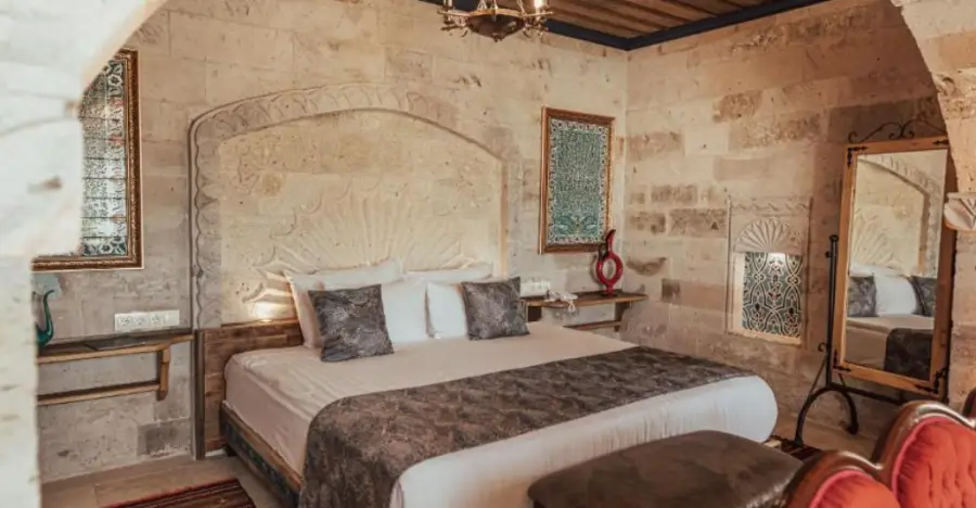 괴레메호텔 사 사라이 케이브 스위트 (SAH SARAY CAVE SUITES)는 동굴 내부를 현대적인 편의 시설과 결합하여 독특하고 아늑한 숙소를 제공합니다. 각각의 스위트룸은 개별적으로 디자인되어 있으며, 터키의 전통적인 인테리어 요소와 현대적인 편의 시설이 조화롭게 어우러져 있습니다.