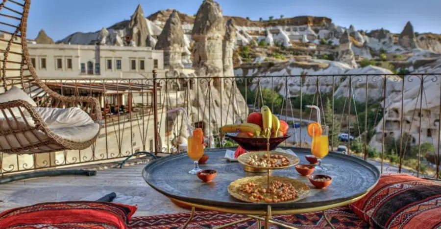 이 호텔에서는 매일 아침 풍성한 조식을 제공하며, 호텔의 레스토랑에서는 터키 전통 음식을 즐길 수 있습니다. 또한, 테라스에서는 캐파도키아의 아름다운 풍경을 감상하며 휴식을 취할 수 있습니다.