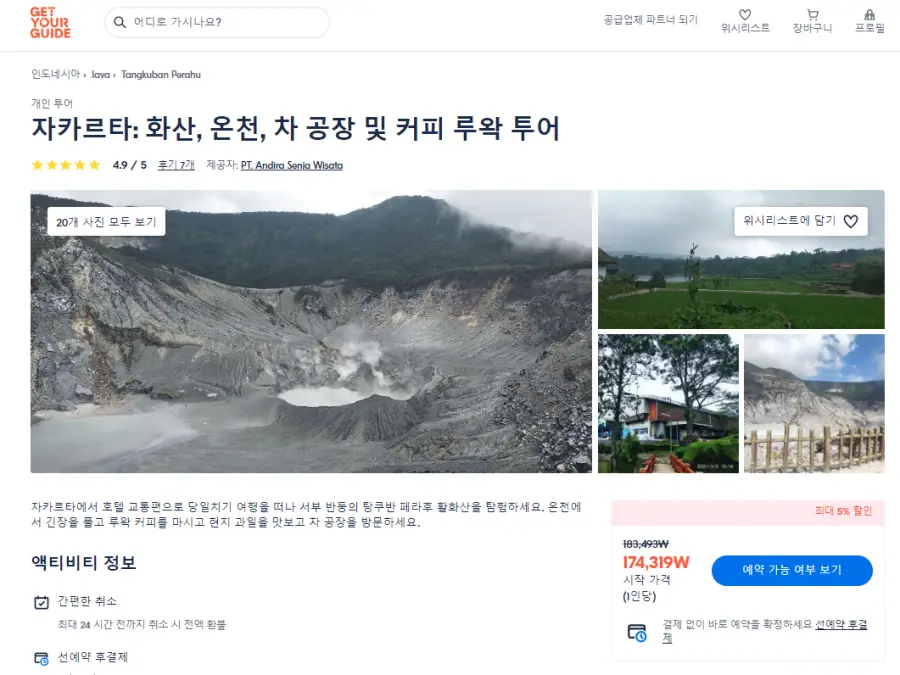 자카르타 유명한곳 하이라이트 현지투어는 GET YOUR GUIDE 사이트에서 예약하실 수 있습니다. 사이트는 특히 전세계 대부분의 나라, 지역의 투어, 교통편 있어, 쉽게 찾을 수 없는 여행지의 다양한 투어 및 서비스를 이용할 수 있는 글로벌 사이트로 한국어사이트는 지원하지 않습니다. (글로벌 한국어 여행사이트를 찾으신다면 klook 여행사이트 추천합니다. 함께 사용하시면 더욱 편하게 여행하실 수 있습니다. klook에 찾는 정보가 없다면 GET YOUR GUIDE에서 찾으시면 됩니다.)
