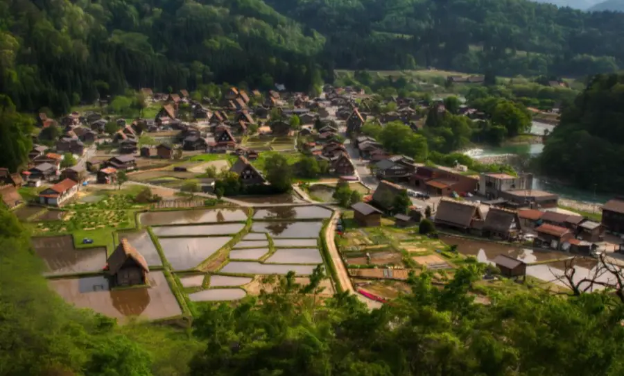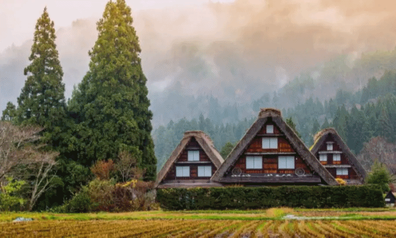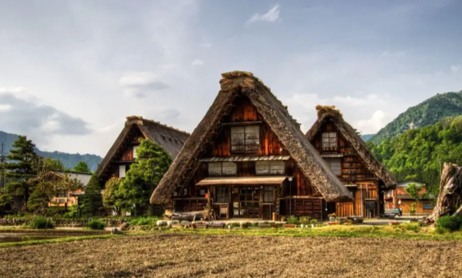 시라카와고: 시라카와고는 일본의 전통적인 산악 마을로, 고유한 가축용 '기젓꼴' 지붕 집들로 유명합니다. 이 지붕은 눈이 많이 내리는 지역에서 집을 보호하기 위해 개발되었으며, '기도하는 손'과 비슷한 형태로 묘사되곤 합니다.