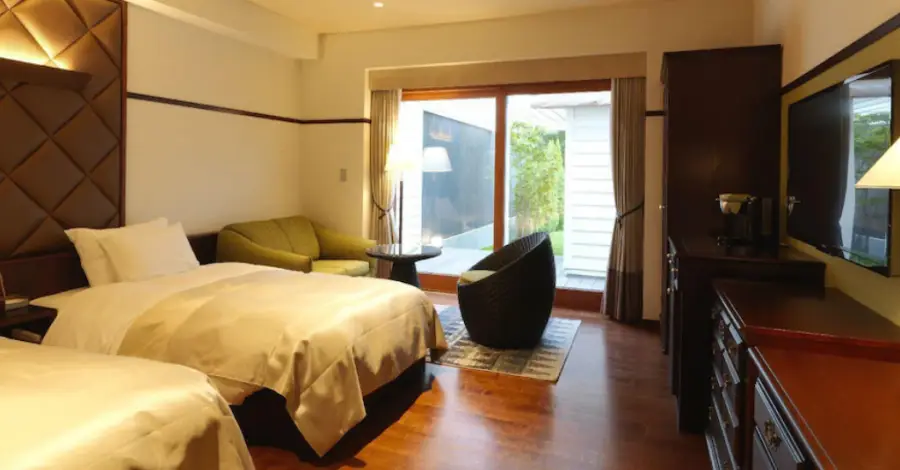 리조트는 편안한 휴식을 위한 다양한 시설을 갖추고 있습니다. 이에는 헬스 클럽, 스파, 레스토랑, 바, 그리고 라운지가 포함됩니다. 또한, 리조트 내에는 오누마 공원을 테마로 한 가든이 있어, 휴식을 취하거나 산책을 즐길 수 있습니다.