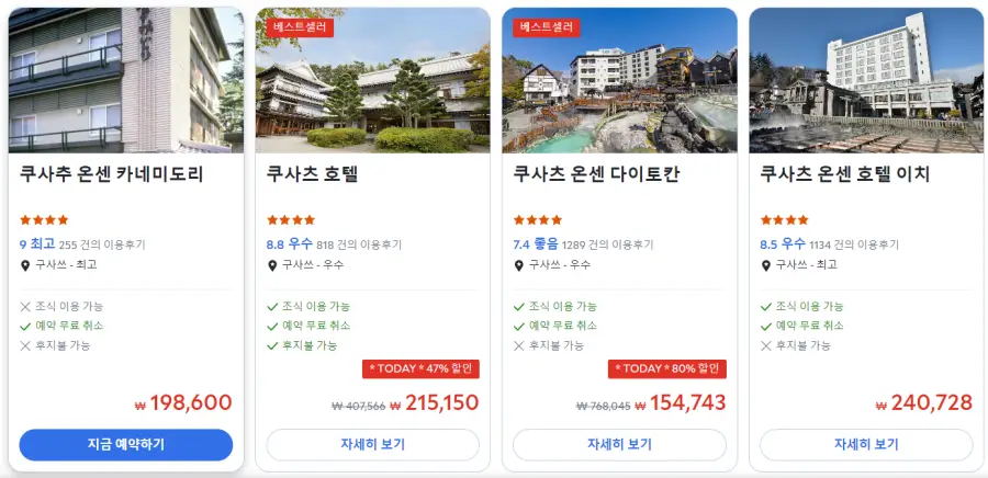 구사츠온천마을 료칸추천 / 일본온천여행에 천연수량이 많기로 유명한 역사깊은 구사츠온천을