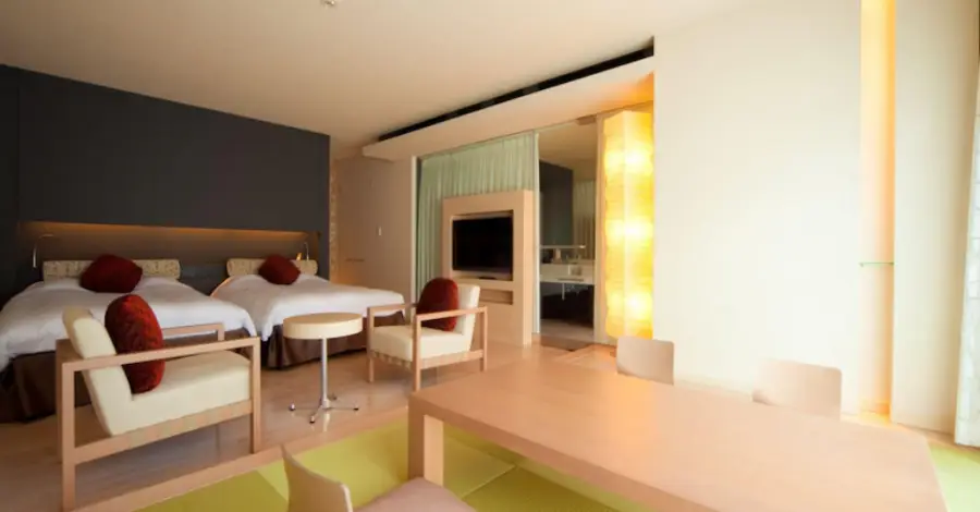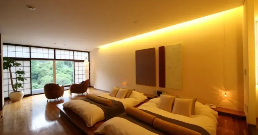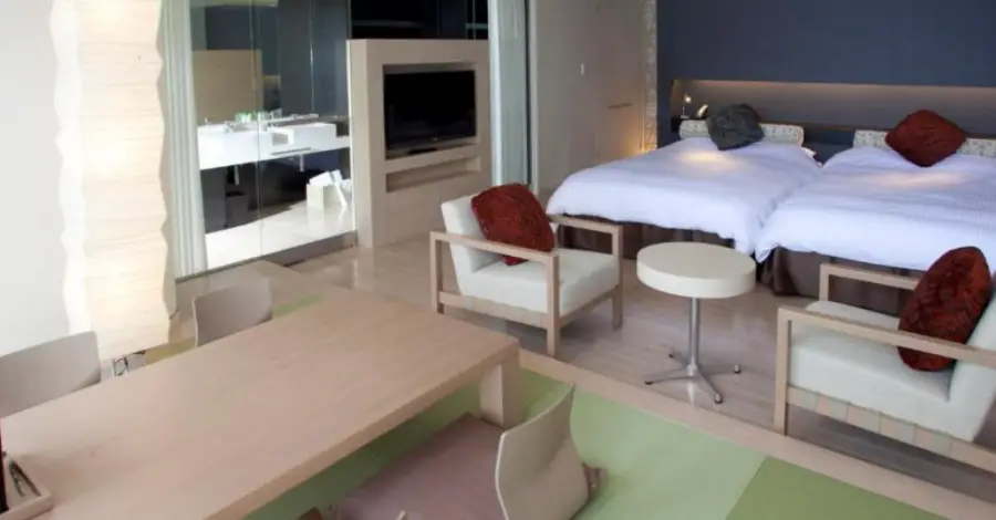일본식 객실: 전통적인 일본 스타일의 객실로, 타타미 바닥과 푸툰 베드가 특징입니다. 이 객실에서는 일본의 전통적인 생활 방식을 체험해볼 수 있습니다. 일부 객실에는 개인 온천 시설이 포함되어 있습니다.