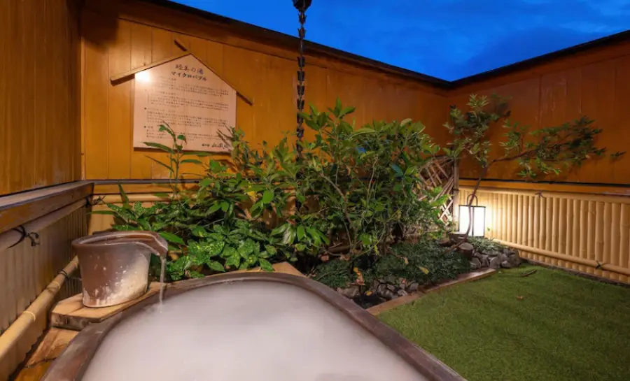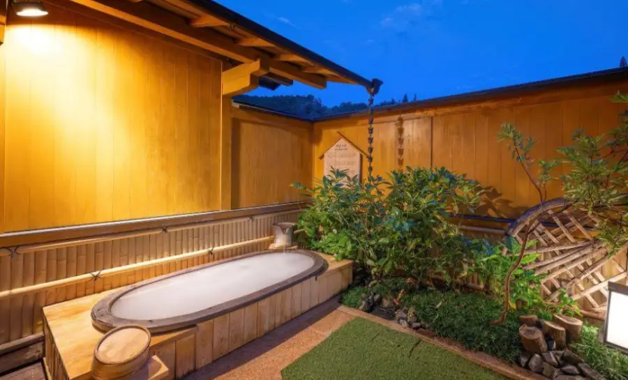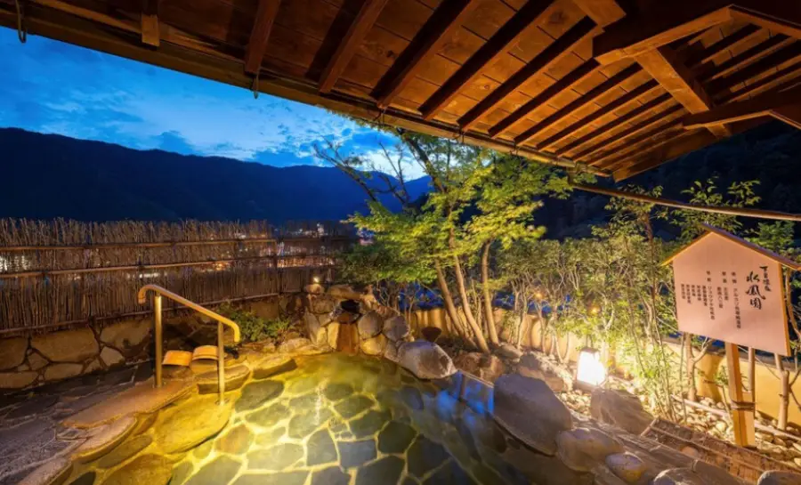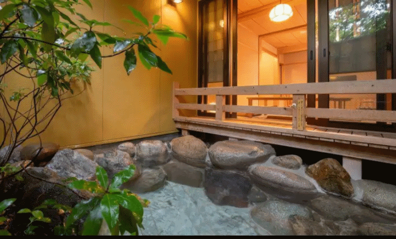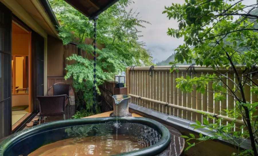 온천 목욕: 일본 전통 료칸은 자연산 온천수를 사용하는 온천 목욕을 제공합니다. 온천은 철저한 관리로 유명하며, 온천 목욕은 피로를 풀고 몸과 마음을 힐링시키는 좋은 방법입니다. 온천 목욕은 성별에 따라 구분되는 공용 목욕탕에서 즐기는 경우와 개인 또는 가족용 목욕탕을 갖춘 객실에서 즐기는 경우가 있습니다.