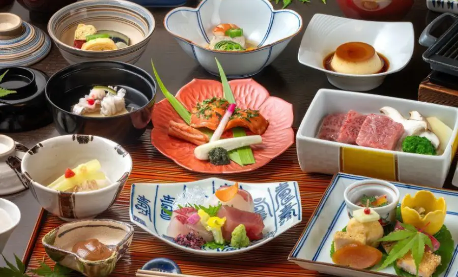 일본식 음식: 료칸에서는 전통적인 일본 음식을 맛볼 수 있습니다. 아침은 일본식 조식인 '와카메'를 즐길 수 있으며, 식사는 일본의 계절과 지역 특산물을 활용한 다채로운 요리로 구성됩니다. 일본 전통 차인 '녹차'를 마시는 것도 료칸에서의 특별한 경험 중 하나입니다.