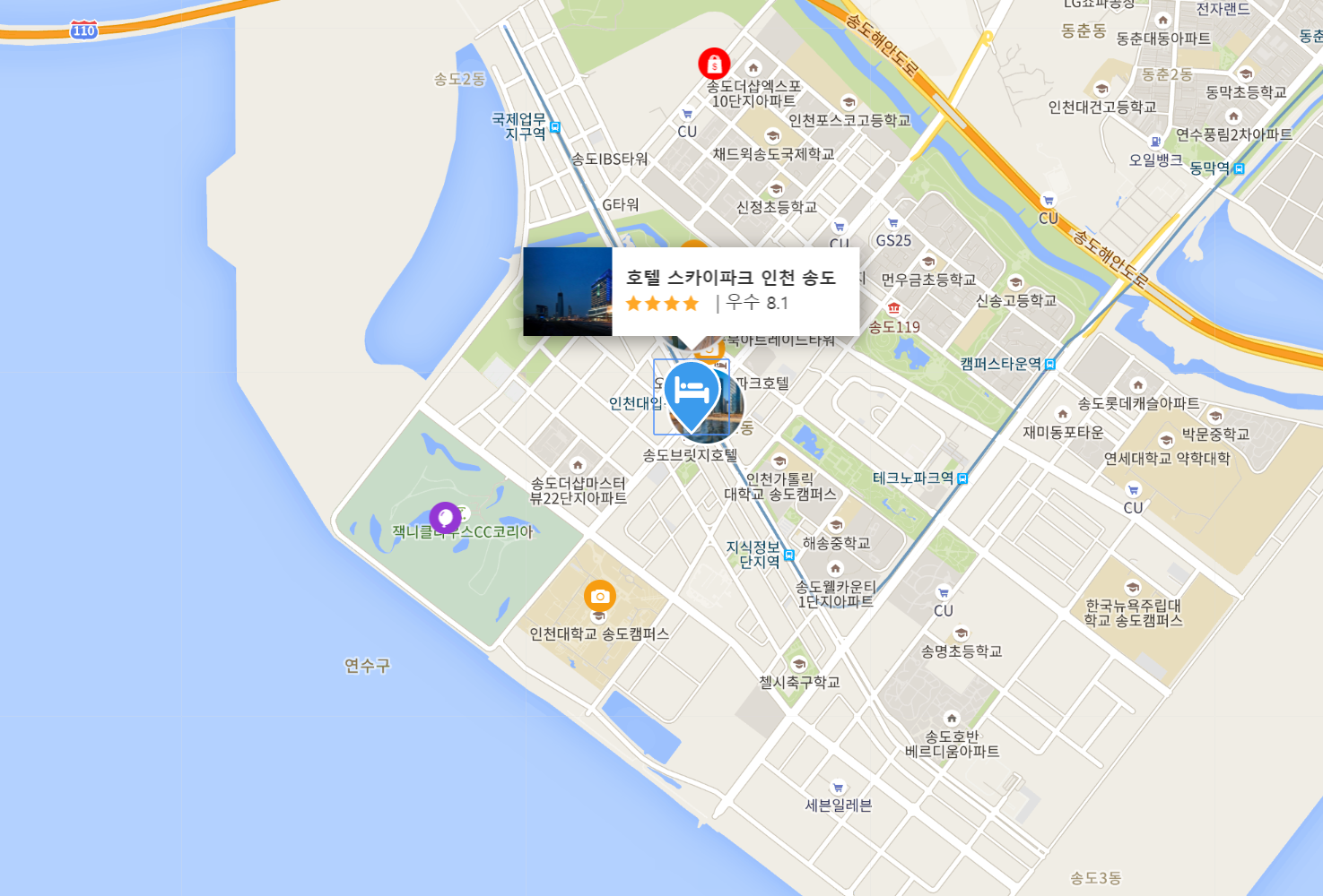 인천 방문 시, 양질의 숙박과 훌륭한 서비스를 제공하는 호텔 스카이파크 인천 송도 (Hotel Skypark Incheon Songdo)에서 집과 같은 편안함을 느껴보시기 바랍니다. 도심에서 단 거리에 있는 호텔 스카이파크 인천 송도 (Hotel Skypark Incheon Songdo)는 투숙객이 빠르고 쉽게 지역의 많은 명소들을 즐길 수 있는 위치적 이점이 있습니다. 본 숙소는 도시의 필수 관광 명소에 손쉽게 접근할 수 있는 편리한 위치를 자랑합니다.