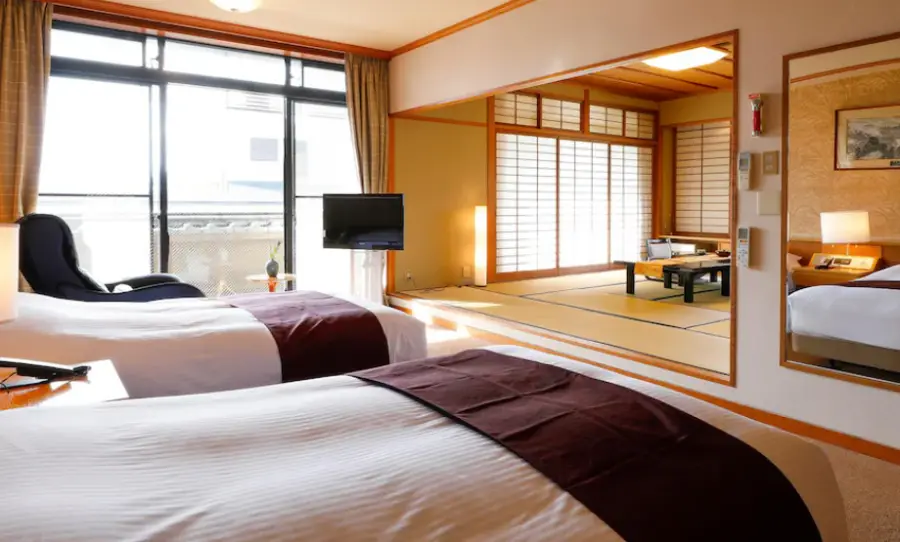 또한 아스카소우 호텔은 전통적인 일본의 감성을 담은 료칸 스타일의 숙박 시설입니다. 객실은 전통적인 일본 스타일인 타타미 바닥과 후톤 침대를 갖추고 있으며, 일본의 전통 가구와 조명 등으로 꾸며져 있어 일본의 고유한 분위기를 느낄 수 있습니다.
