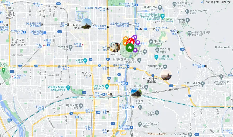 또한, 이 지역은 교토의 유명한 관광지인 기요미즈데라, 헤이안 신궁, 니조성 등과 가깝습니다. 이렇게 다양한 관광 명소와 가까워서, 여행객들은 이 지역에서 쉽게 교토의 문화와 역사를 체험할 수 있습니다.