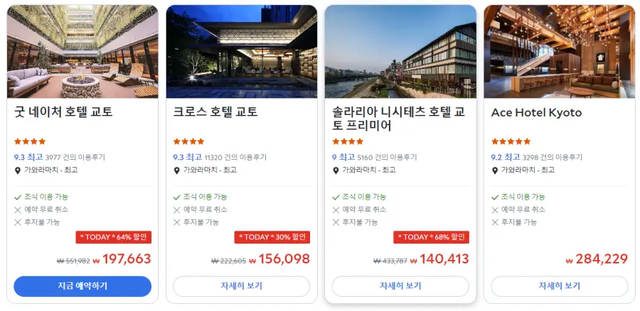 굿 네이처 호텔 교토 (GOOD NATURE HOTEL KYOTO)의 최저 가격대는 아고다웹사이트에서 할인특가 가격으로 매일매일 변동되며 10만원대부터 다양하게 형성됩니다. 날짜별로 매일 가격이 다르므로 아고다웹사이트 최저가를 확인하시려면 아래 링크를 누르시고 원하는 날짜의 가격대를 선택해야 정확한 가격을 자세히 보실 수 있습니다.