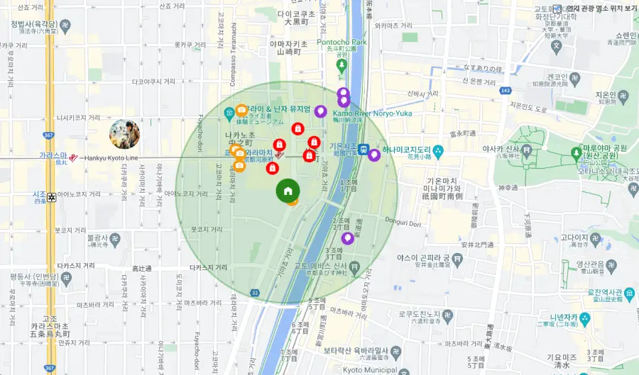 요약하자면, 가와라마치 지역은 교토의 전통과 현대가 공존하는, 독특하고 흥미로운 분위기를 가진 곳입니다. 이 지역에서는 다양한 쇼핑과 식사 옵션을 즐길 수 있으며, 교토의 유명한 관광지를 쉽게 방문할 수 있습니다.