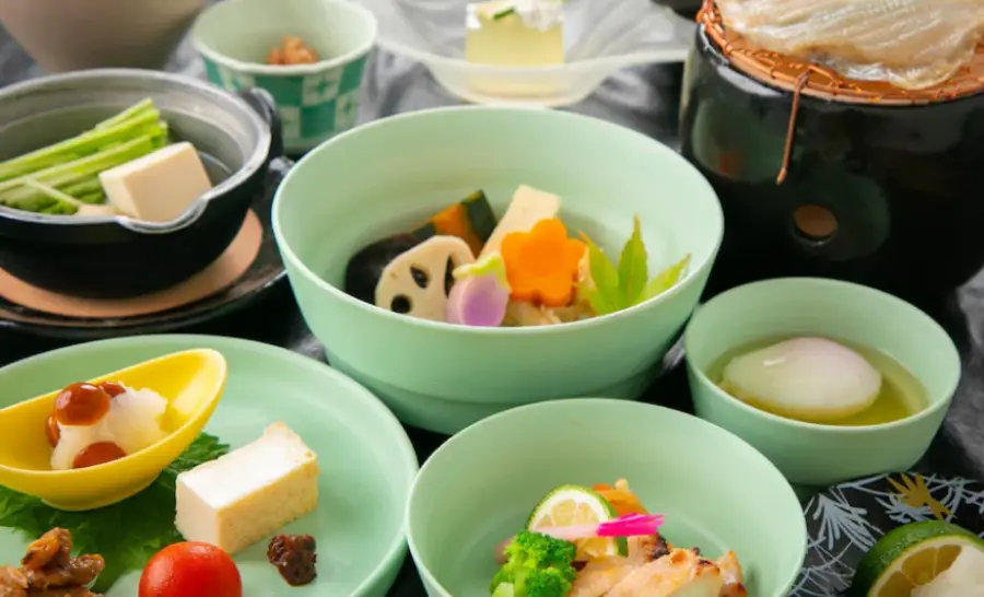 료칸 와잔호 (Yufuin Ryokan Wazanho)에서의 식사 경험 역시 놀라울 만큼 특별합니다. 일본의 전통 요리를 선보이는 이 곳의 요리사들은 신선한 재료를 사용하여 정성스럽게 요리를 만듭니다. 각 요리는 맛뿐만 아니라 모양과 색상, 질감까지 고려하여 만들어져, 눈과 입 모두를 즐겁게 합니다.