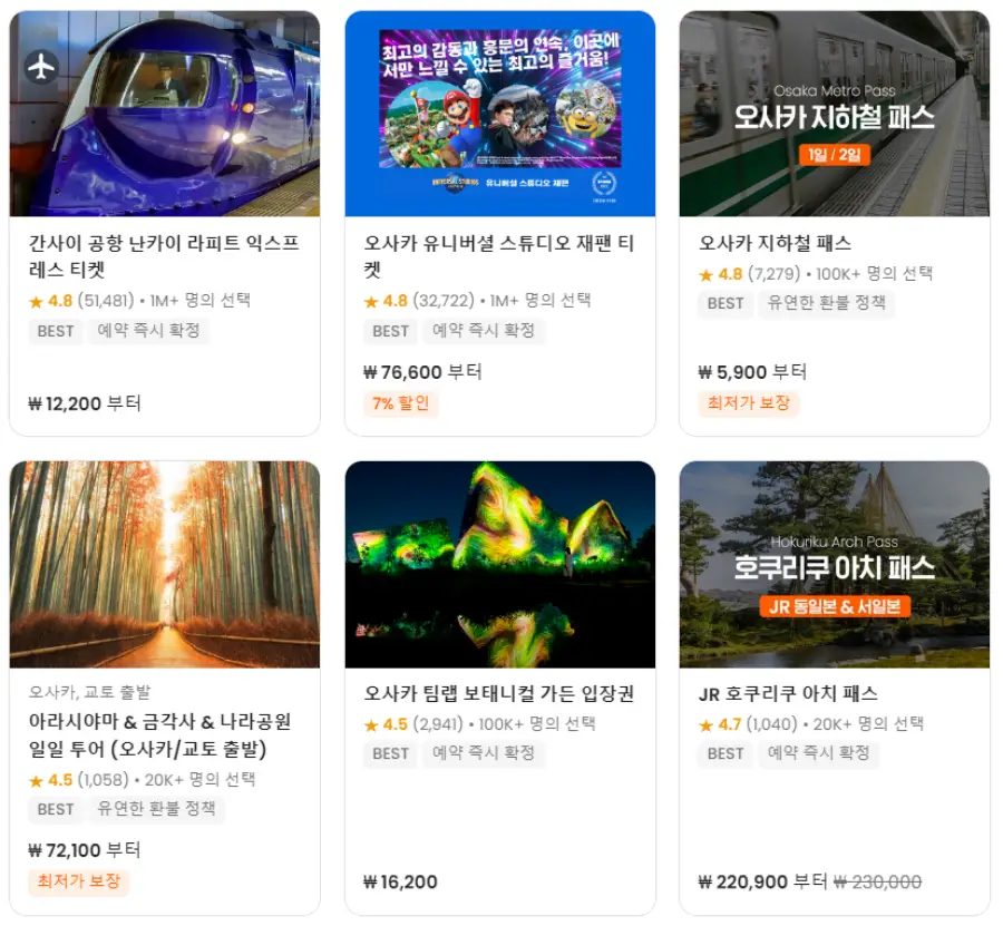 오사카만능교통카드 이코카 IC 카드는 클룩사이트에서 쉽게 예약하실 수 있으며, 현재 할인된 금액에 이용하실 수 있습니다. 내용 및 요금은 항상 변경될 수 있으니 예약사이트에서 정확한 내용을 확인하셔야 합니다.