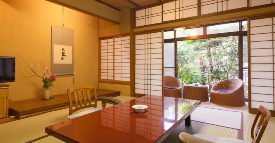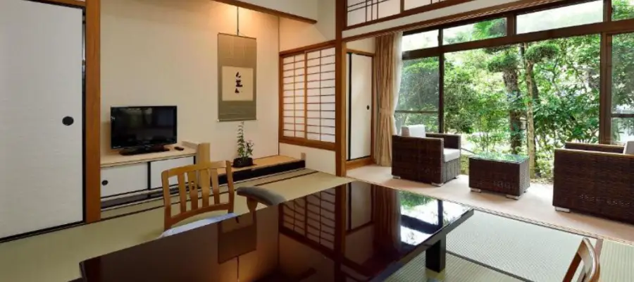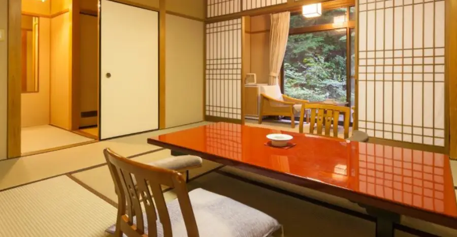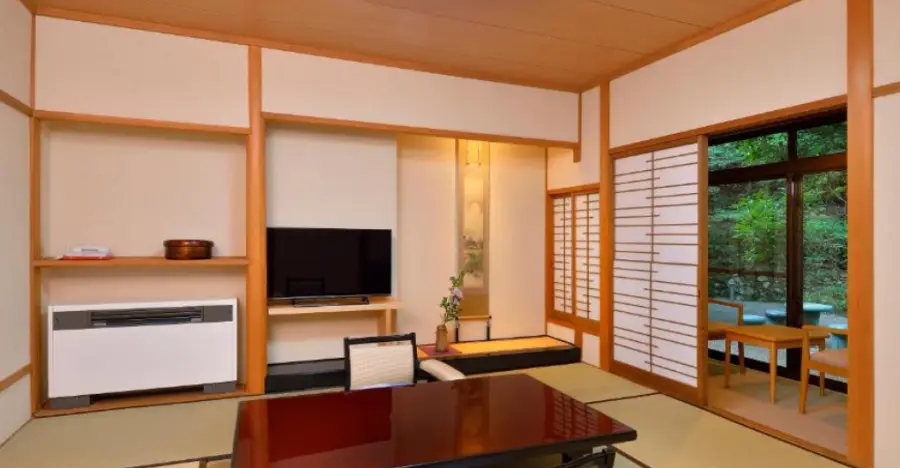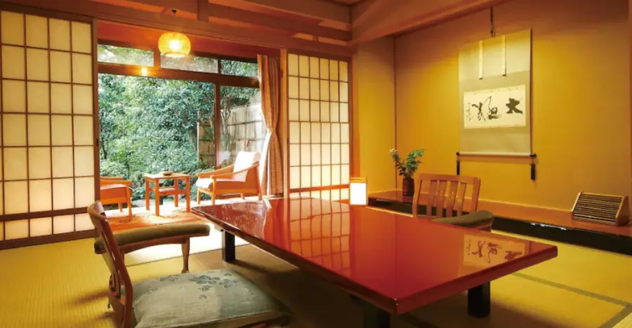 료칸 겟코엔 유게츠 산소우 호텔 (Gekkoen Yugetsusanso Hotel)은 전통적인 일본 스타일의 인테리어와 현대적인 편의 시설이 조화를 이루는 곳입니다. 객실은 전통적인 일본 스타일로 꾸며져 있으며, 각각의 방에서는 아리마 온천의 아름다운 경치를 감상할 수 있습니다.