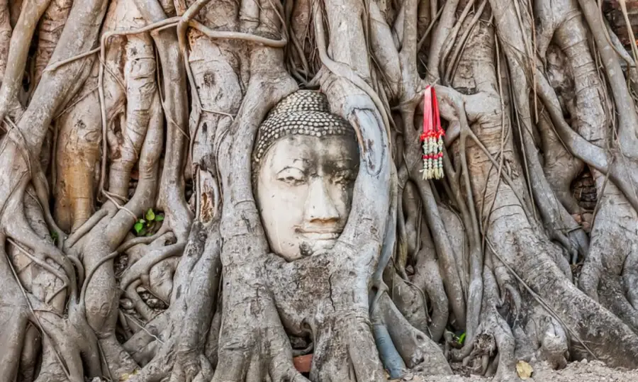 아유타야를 대표하는 유적 중 하나는 왓프라마하타트입니다. 이 곳은 가장 오래된 사원 중 하나로, 대부분의 건물이 파괴되었지만 그 중심부에 위치한 석탑은 아직도 남아 있습니다. 이 석탑은 아유타야 시대의 건축 스타일을 잘 보여주는 대표적인 예로, 그 높이는 40m에 달합니다. 특히 이 석탑 주변에는 머리가 나무에 둘러싸여 있는 불상이 있어, 방문객들의 참배를 받고 있습니다.