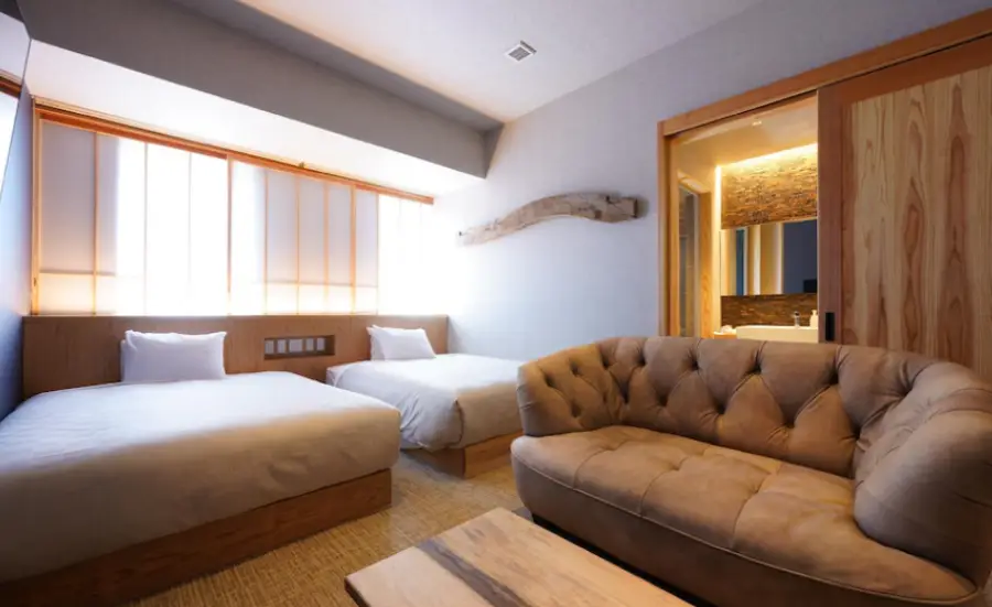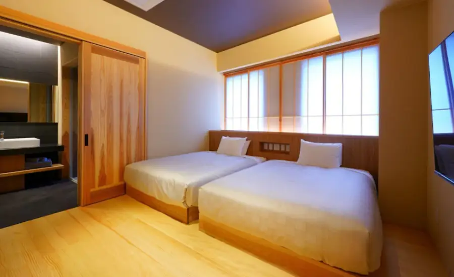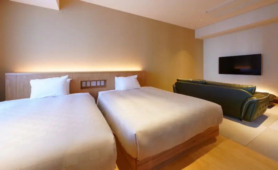 고급 온천수는 마법처럼 스트레스를 풀어줍니다. TV와 Wi-Fi의 보너스 포인트 – 현대적인 편안함과 전통적인 매력이 만났습니다. 일본 최고의 호텔 경험을 경험해 보세요(지금까지!).