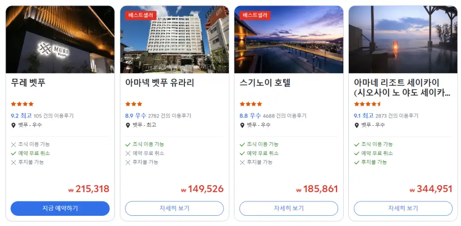 2024.01.10 - [해외여행/일본 여행] - 벳부온천 옥상온천호텔 / 벳부여행에 특별한 경험 고층전망의 옥상 온천에서 즐기는 온천여행 벳브 스기노이 호텔