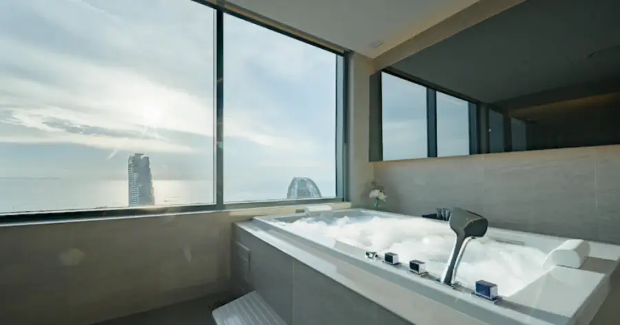 객실: 이 호텔은 총 396개의 객실을 보유하고 있습니다. 각 객실은 고급스럽게 꾸며져 있으며, 탁 트인 바다와 도시 전경을 감상할 수 있습니다. 또한, 모든 객실에는 에어컨, 미니바, TV, 개인용 세이프, 전용 욕실 등이 구비되어 있습니다.