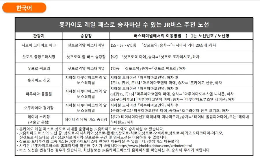 더불어, 이 패스는 JR 노선에만 사용할 수 있습니다. 따라서, 홋카이도 내의 JR이 운영하지 않는 노선이나 버스, 페리 등 다른 교통수단은 이용할 수 없습니다. 이 점을 꼭 유의해야 합니다.