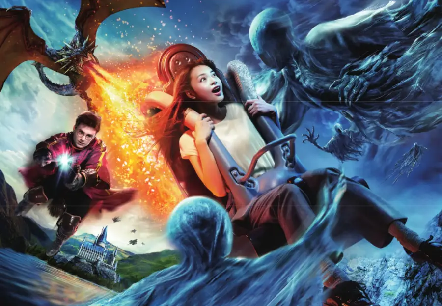 해리 포터와 비밀의 방 : 이 어트랙션은 해리 포터 시리즈의 마법 세계를 체험할 수 있게 해주는 라이드입니다. 참가자들은 브룸스틱을 타고 호그와트 성을 비롯한 여러 장소를 돌아다닐 수 있습니다.